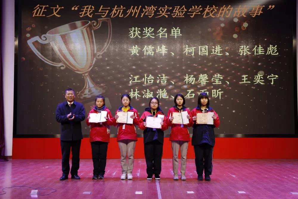 會上,還表彰了“我與杭州灣實驗學校的故事”征文獲獎人員,師生共敘校園情,同臺受獎掌聲鳴。